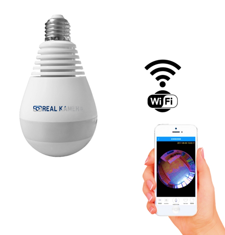 Panoramik Lamba Kamera 1080P, 360/180˚ P2P, KAYIT, ALARM, WIFI, E27