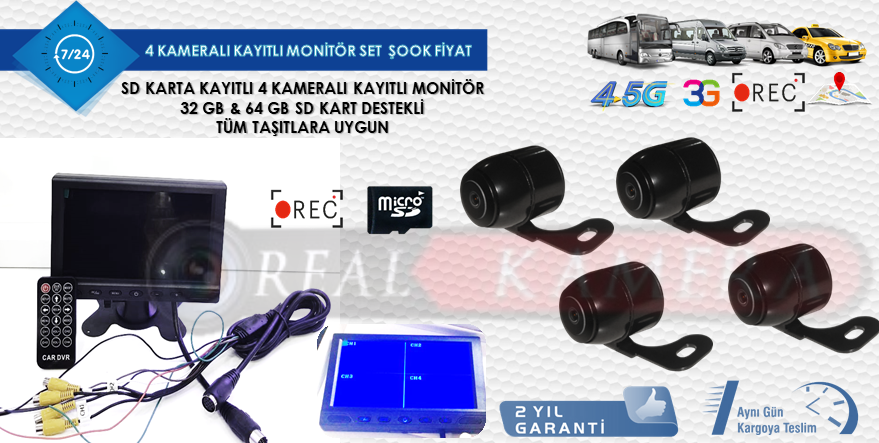 4 Kanal SD Karta Kayıtlı Monitör