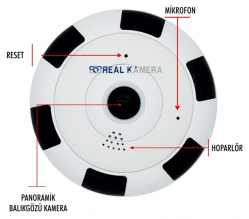 Panoramik Tavan Kamerası 1080P, 360/180˚ P2P, KAYIT, ALARM, WIFI, IR, KAMERA